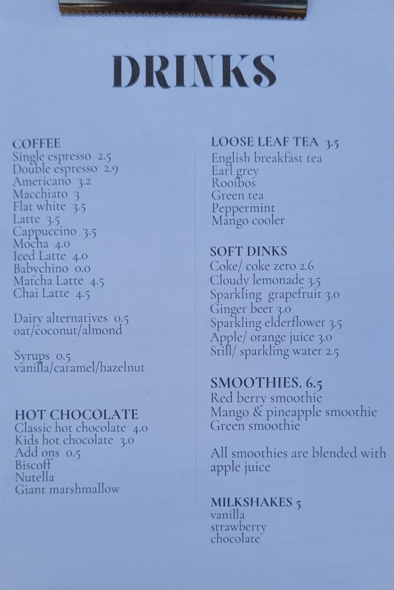 The drink offerings match the comforting feel of the food—specialty coffees from cappuccinos and mochas to inventive beverages like beetroot lattes and hot chocolate with melted marshmallows provide moments of quiet indulgence. In the evenings, there’s a range of cocktails and spritzes that bring a relaxed yet polished touch to any gathering.